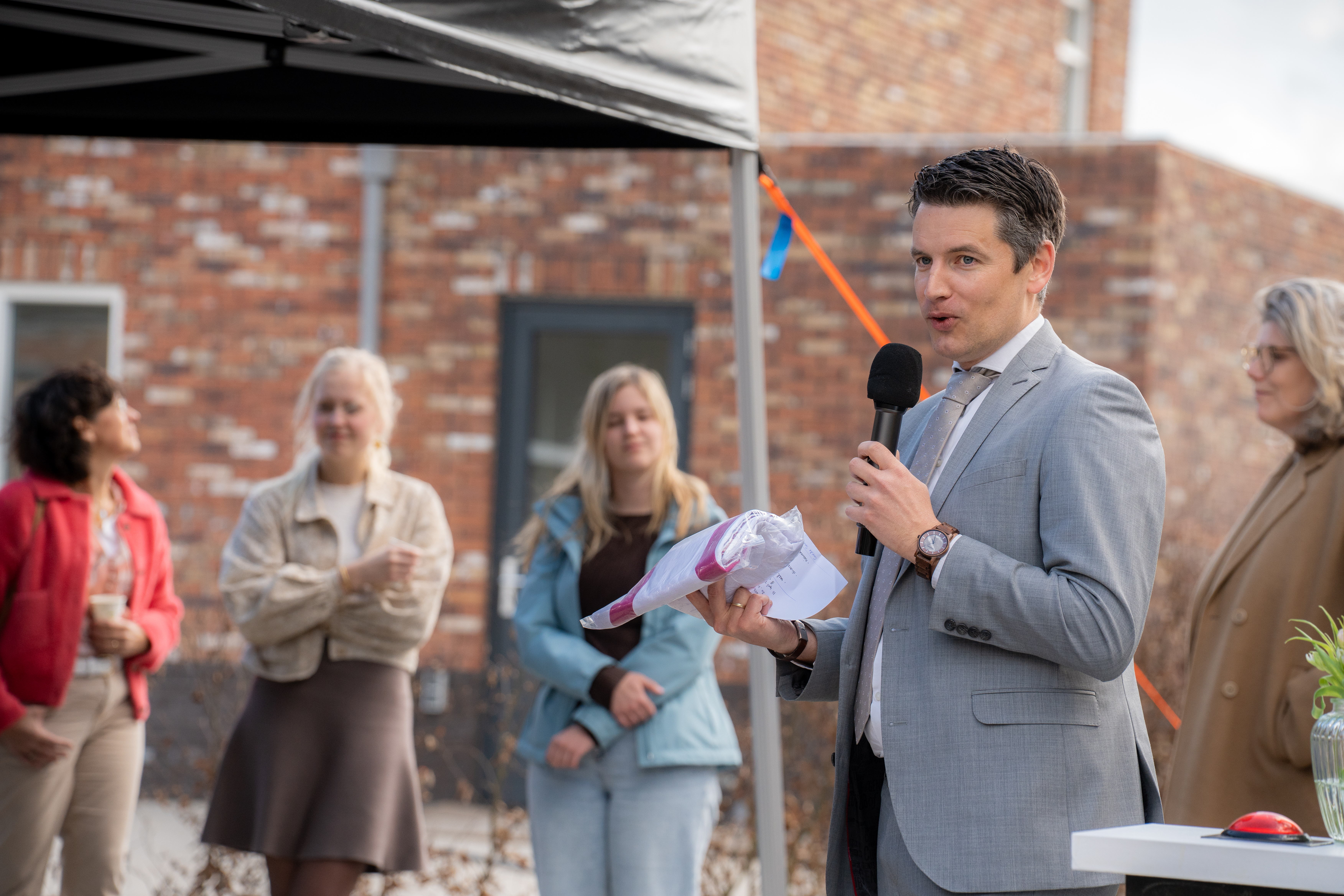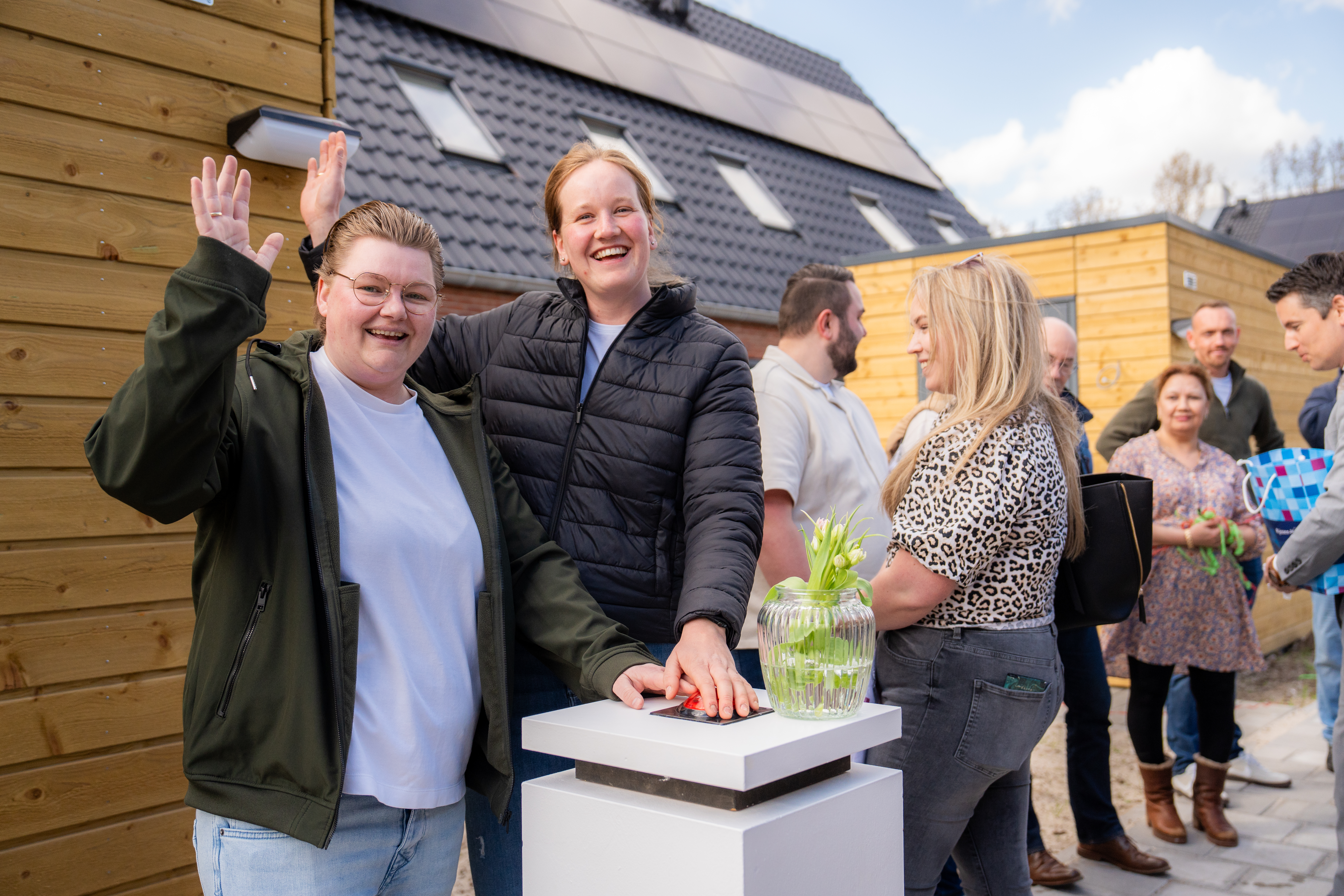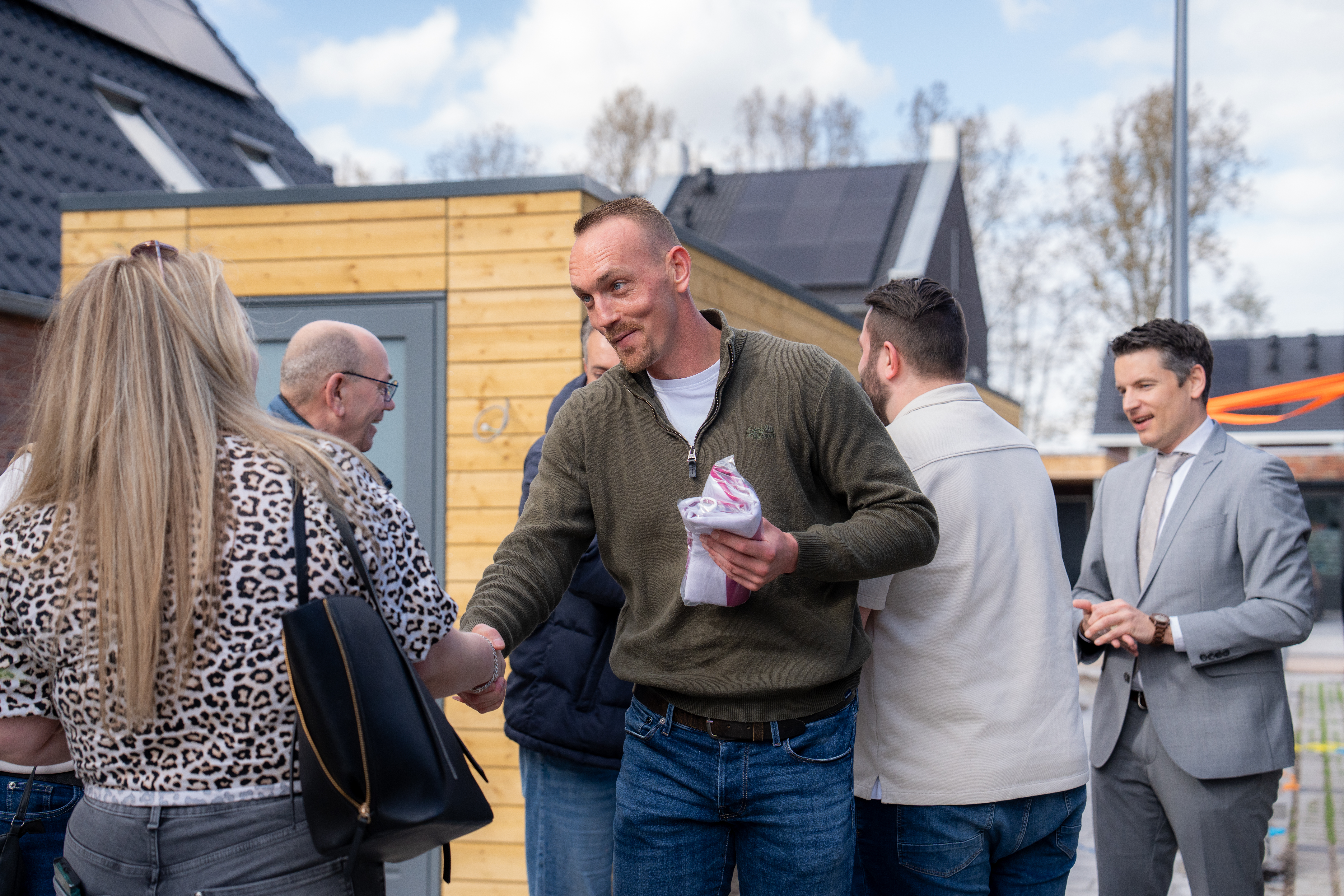 Blije gezichten gisteren bij de oplevering van onze acht nieuwe woningen in de wijk Opbroek in Rijssen. Met een druk op de knop zorgde de familie Stinissen voor een feestelijke confettiregen voor hun nieuwe woning. Samen met de andere nieuwe huurders, Bouwbedrijf Ter Harmsel, de collega's en wethouder Erik Wessels vierden we deze mijlpaal.